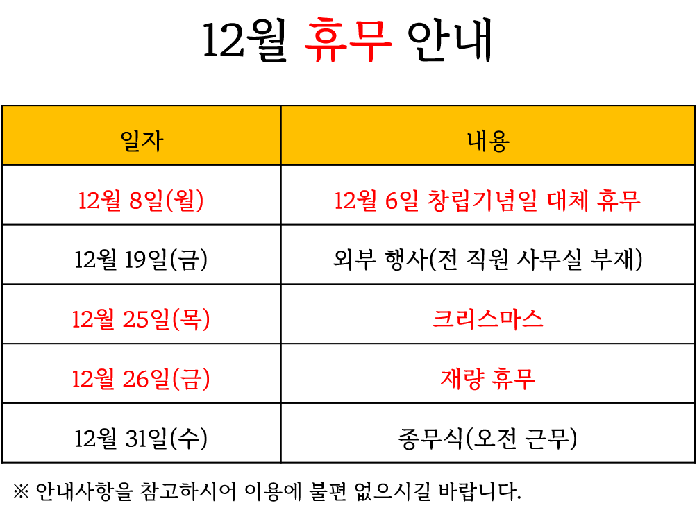 12월 휴무 안내
